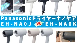 Panasonic(パナソニック)のヘアドライヤー、ナノケアEH-NA0JとEH-NA0K。型式「J」と「K」の違いについて、6つの特性(基本情報/サイズ・重量/温風温度/風量/消費電力/機能・使いやすさ)別に詳しく比較しました。ヘアドライヤーの購入を検討中の方の参考になれば、幸いです。