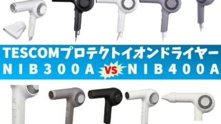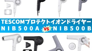 TESCOMのプロテクトイオンヘアドライヤーNIB500AとNIB500B。型式「A」と「B」の違いについて、5つの特性(基本情報/サイズ・重量/温風温度/消費電力/機能・使いやすさ)別に詳しく比較しました。ヘアドライヤーの購入を検討中の方の参考になれば、幸いです。