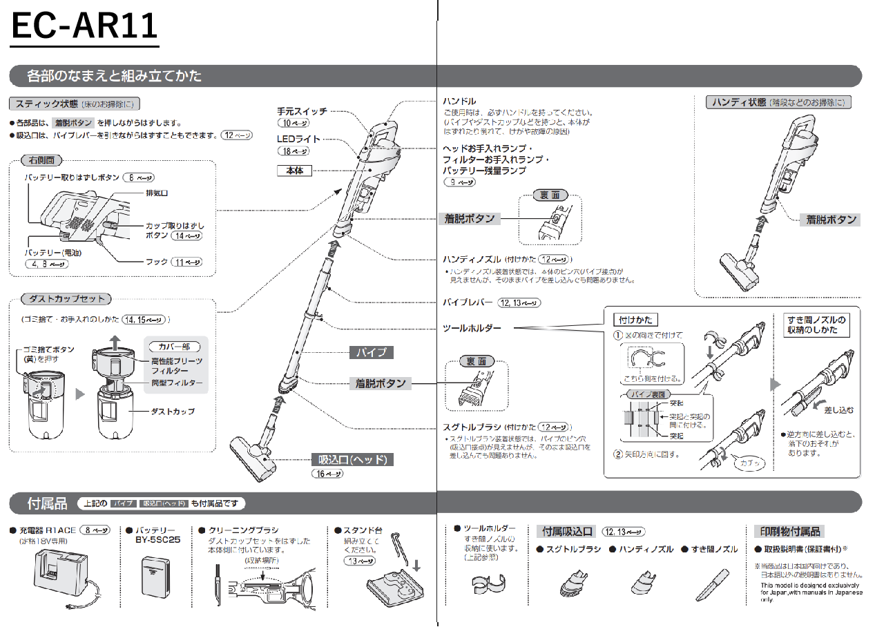 EC-AR11は2025年モデルとして、軽量・静音・高性能に加え「環境配慮設計」が魅力のスティック掃除機です。環境に優しい暮らしを目指すご家庭や、最新モデルを安心して長く使いたい方におすすめです。