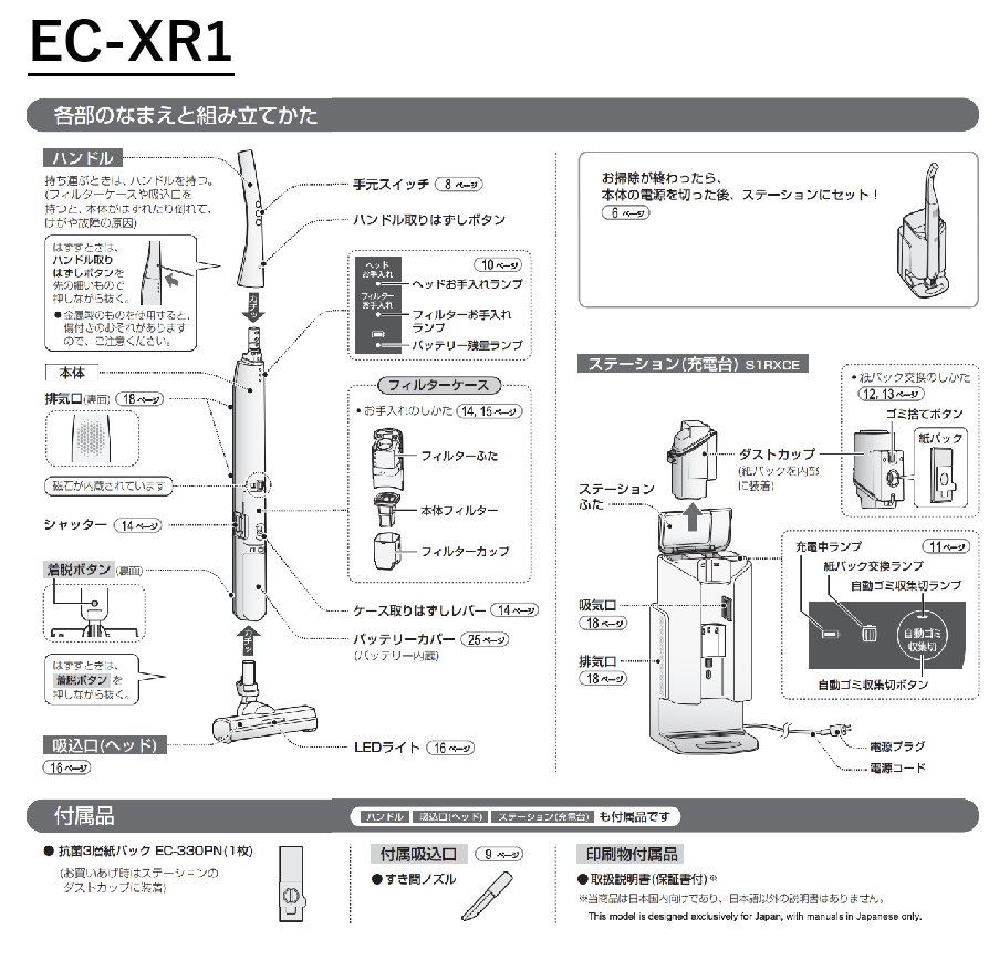 • 便利機能 EC-XR1はLEDライト搭載、かつすき間ノズル付き