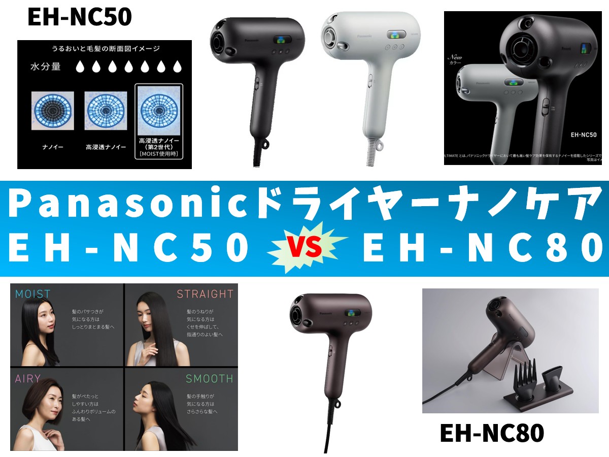 Panasonic(パナソニック)のヘアドライヤー、ナノケアEH-NC50とEH-NC80。