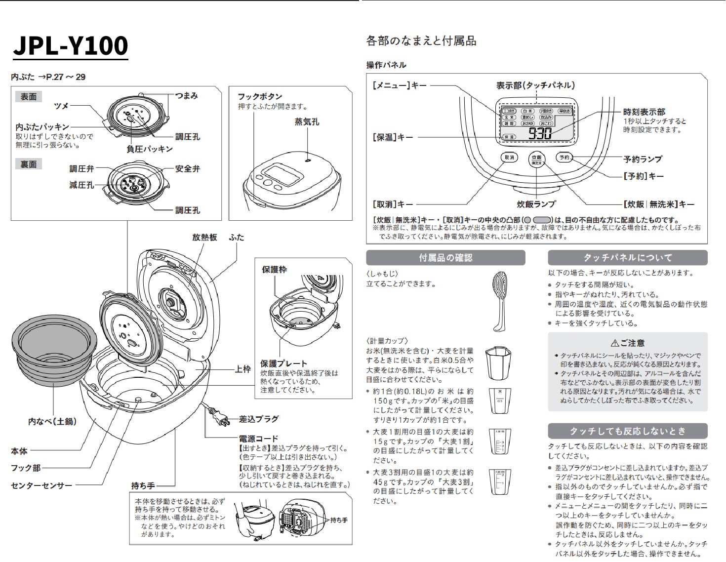 - 加熱方式 JPL-Y100:土鍋圧力IH、JRX-S100:300℃ WレイヤーIH