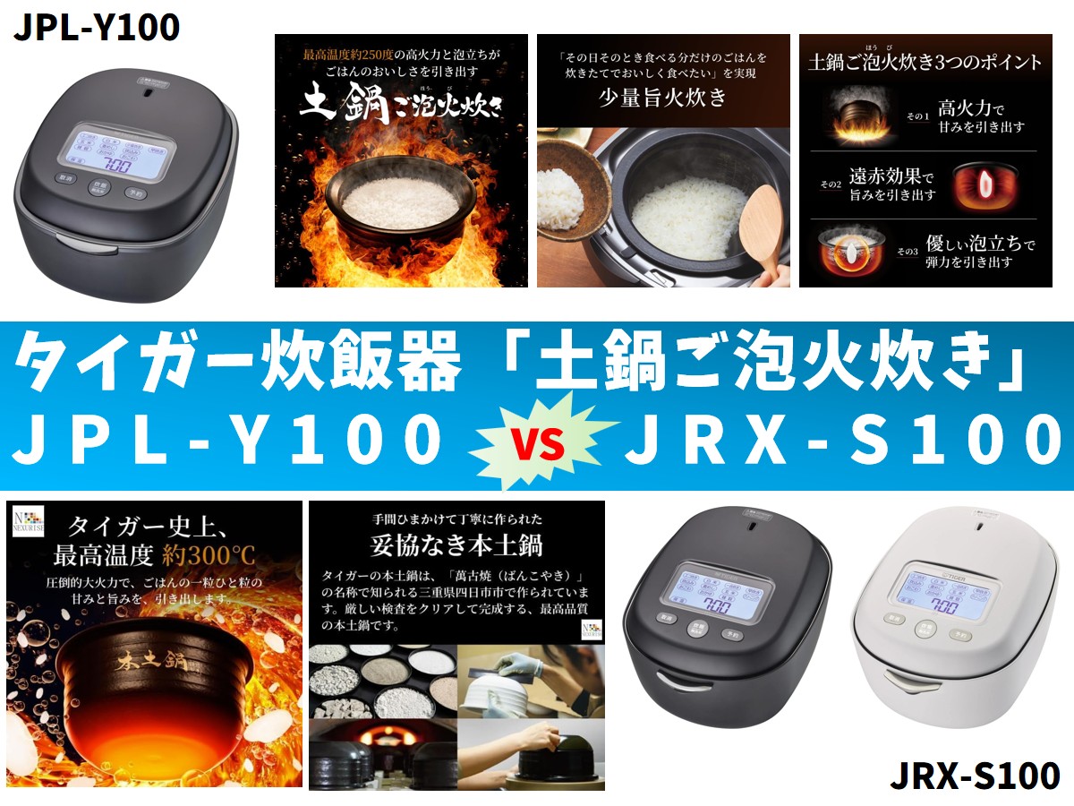 JPL-Y100とJRX-S100の違いを5つの特性別に徹底比較!タイガーの炊飯器「土鍋ご泡火炊き」まとめ