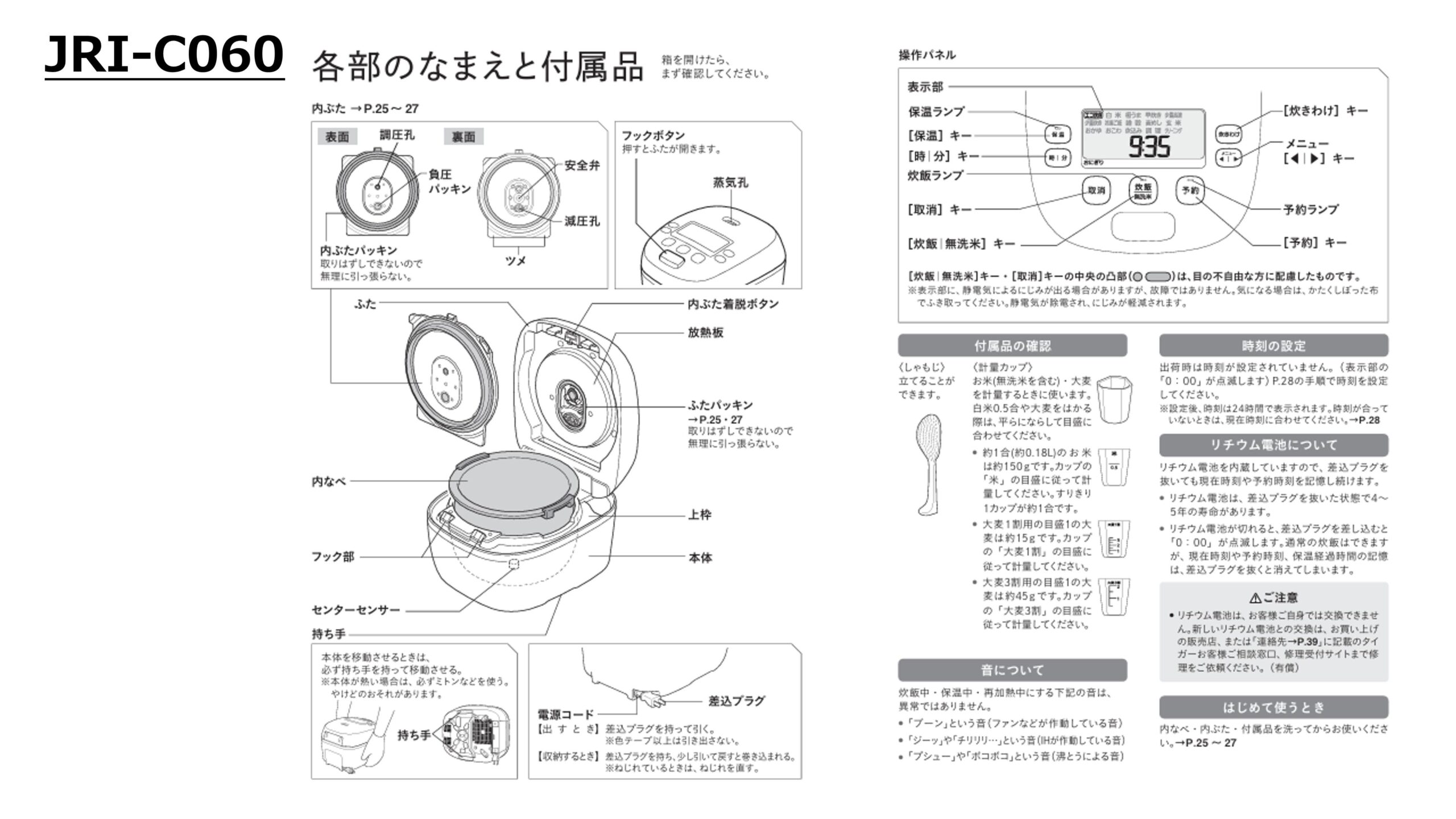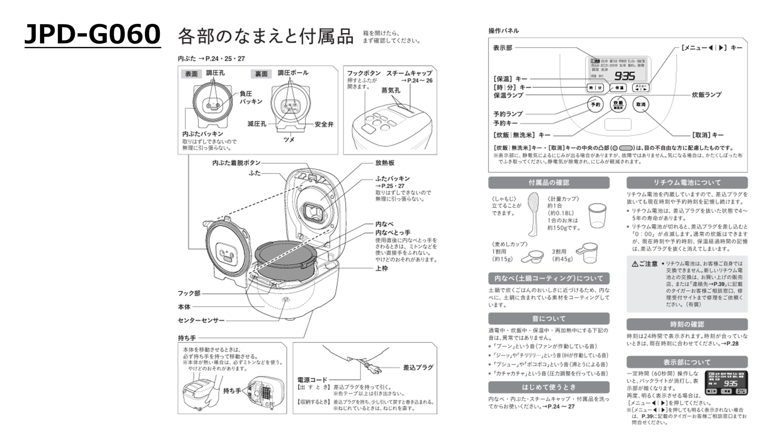 - 保温制御 JRI-C060:粒立ち保温プログラムあり、JPD-G060:なし
