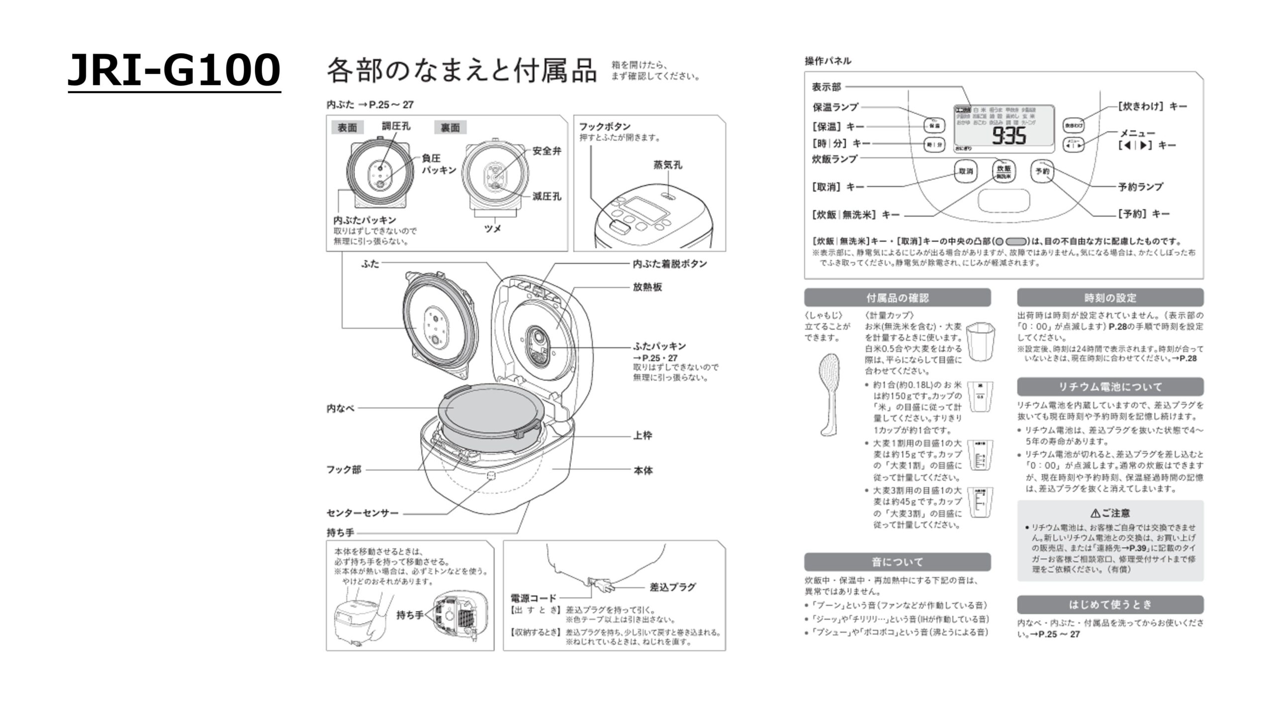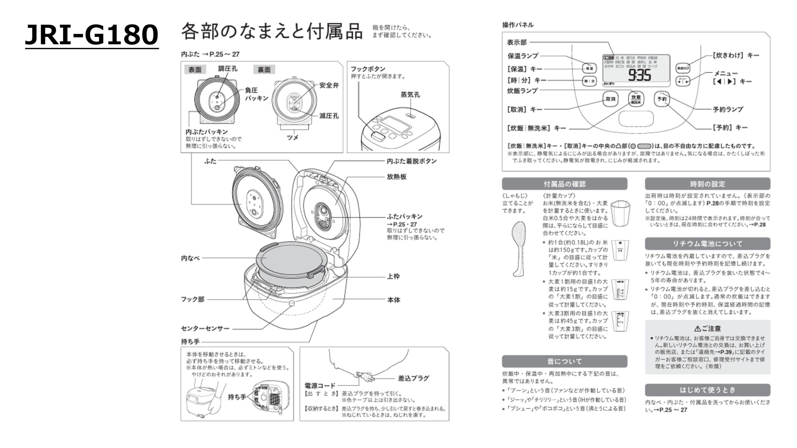 - 炊飯容量 JRI-G100:5.5合、JRI-180:1升