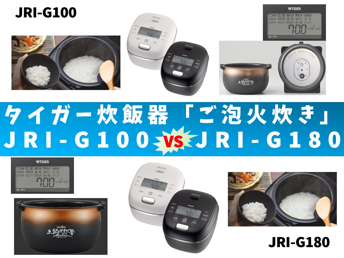 JRI-G100とJRI-G180の違いを5つの特性別に徹底比較!タイガーの炊飯器「ご泡火炊き」まとめ