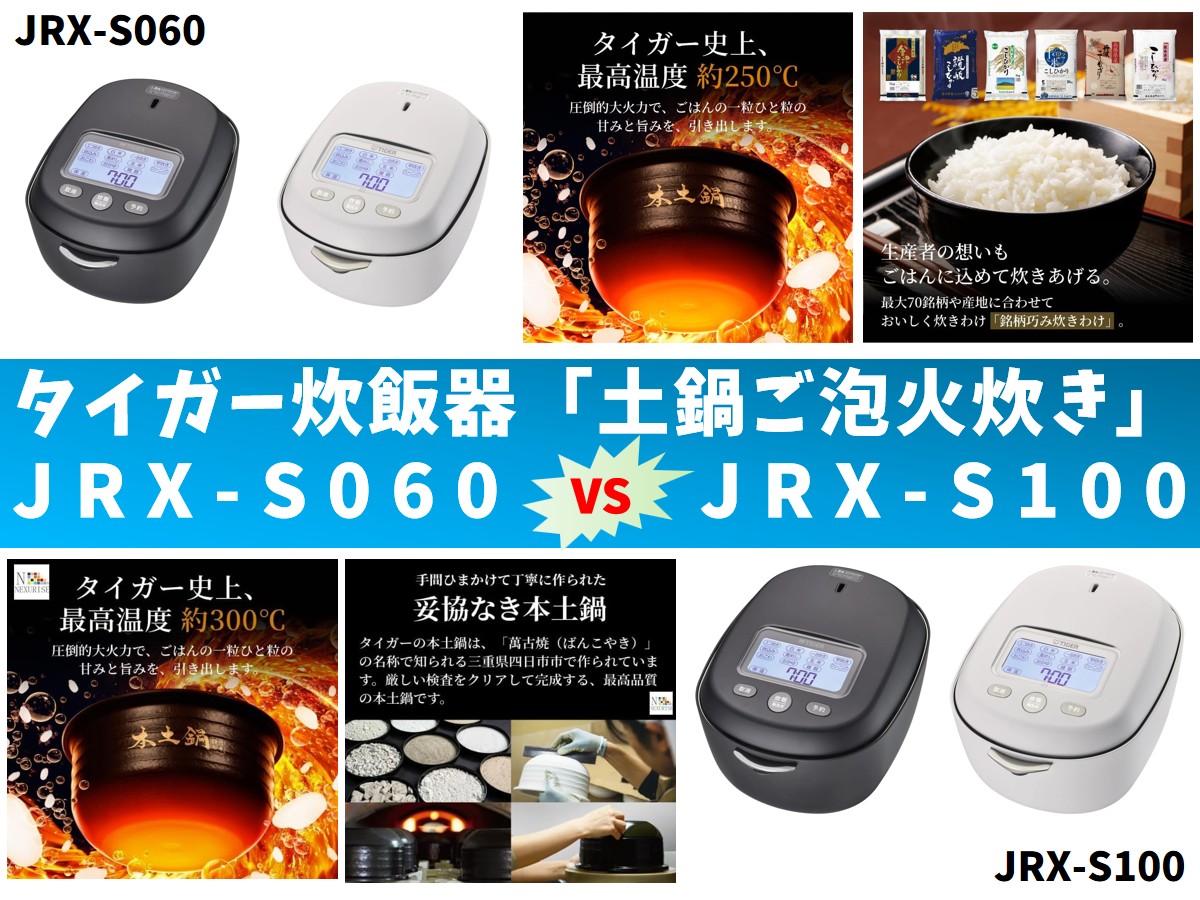 JRX-S060とJRX-S100の違いを5つの特性別に徹底比較!タイガーの炊飯器「土鍋ご泡火炊き」まとめ