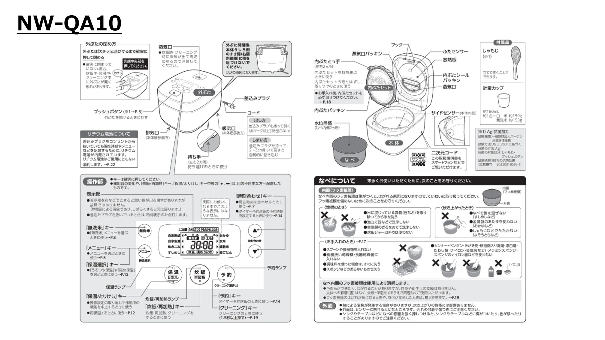 - 炊飯時消費電力量 NW-QA10:149Wh、NW-QB10:148Wh