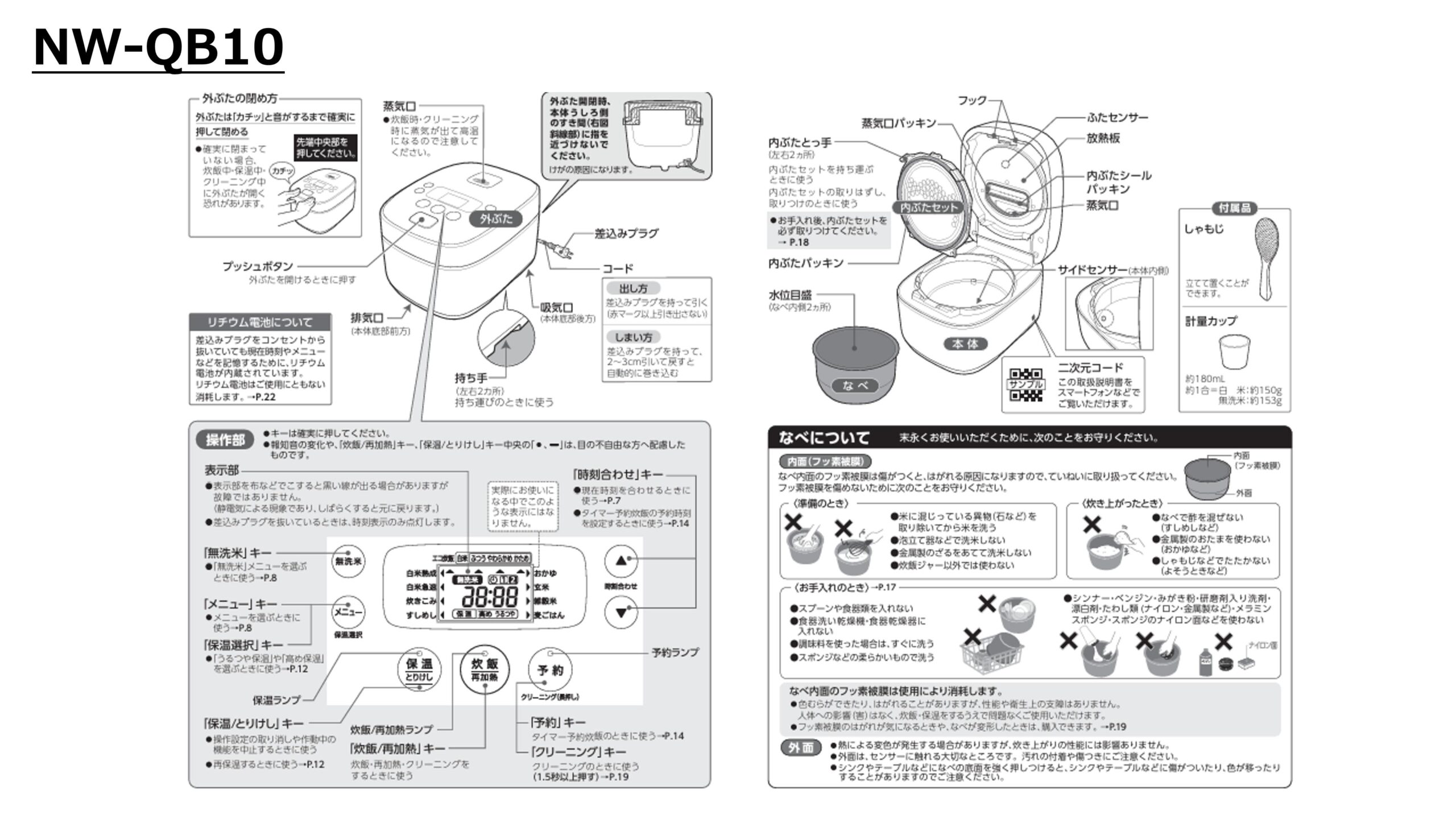 - 炊飯容量 NW-QB10:5.5合、NW-QB18:1升
