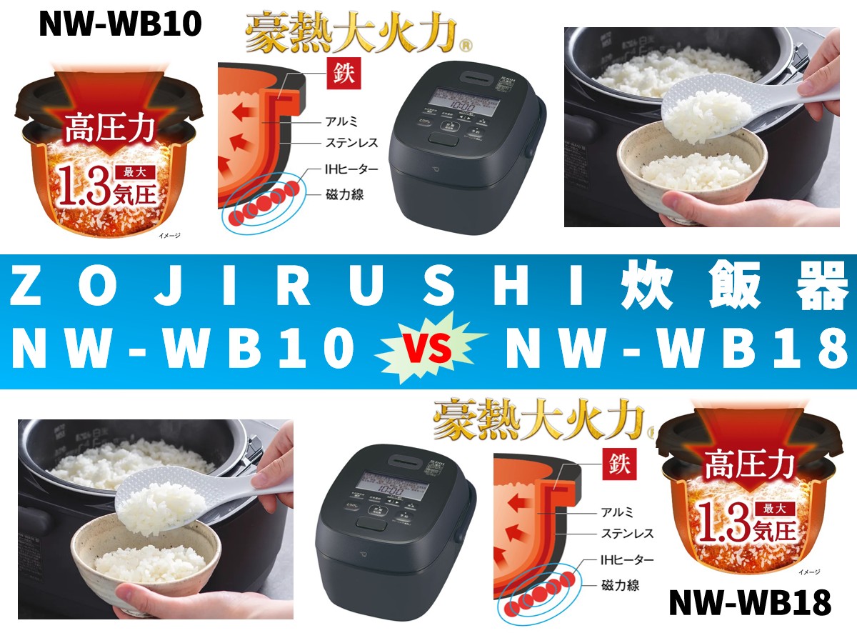象印の炊飯器「豪熱大火力」シリーズのNW-WB10とNW-WB18。