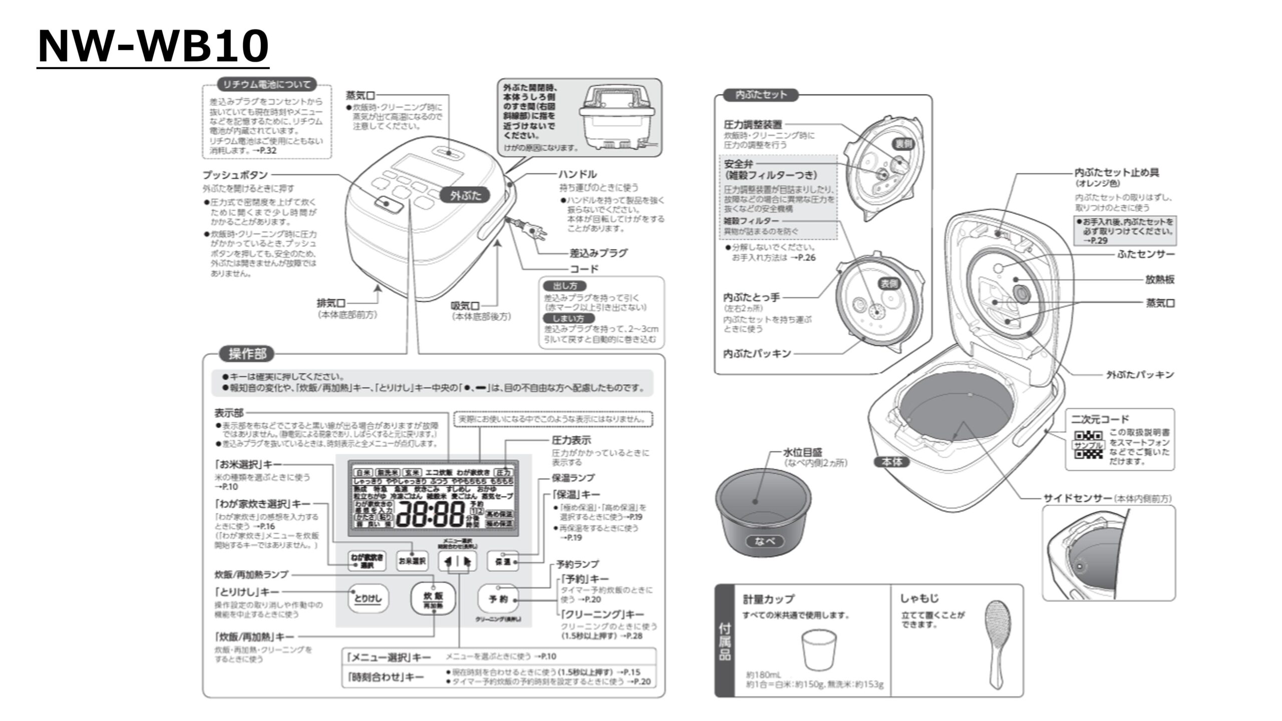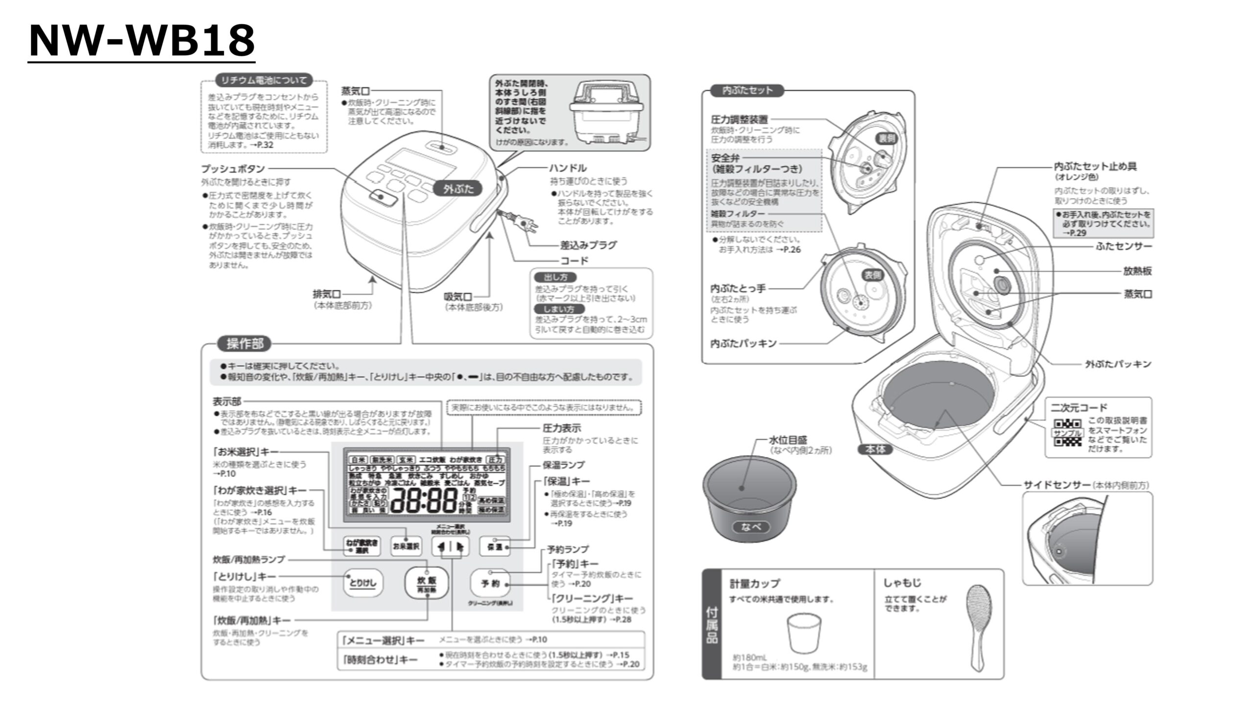 - 炊飯容量 NW-WB10:5.5合、NW-WB18:1升