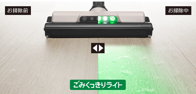 ●LEDライト:PKV-BK50Pは「3方向ごみくっきりライト」に進化。ヘッドの前と左右3方向の見えにくかったごみも浮かび上がらせて、視認性が向上しています。