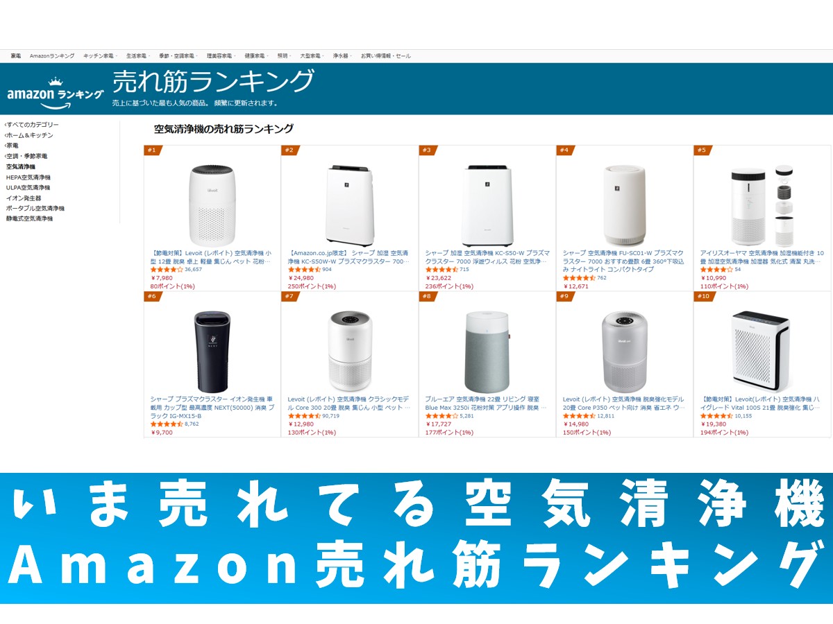 【公式】Amazon空気清浄機の売れ筋ランキングサイトはこちら