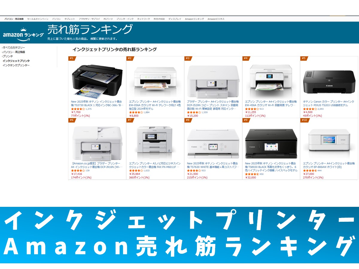 【公式】Amazonインクジェットプリンタの売れ筋ランキングサイトはこちら