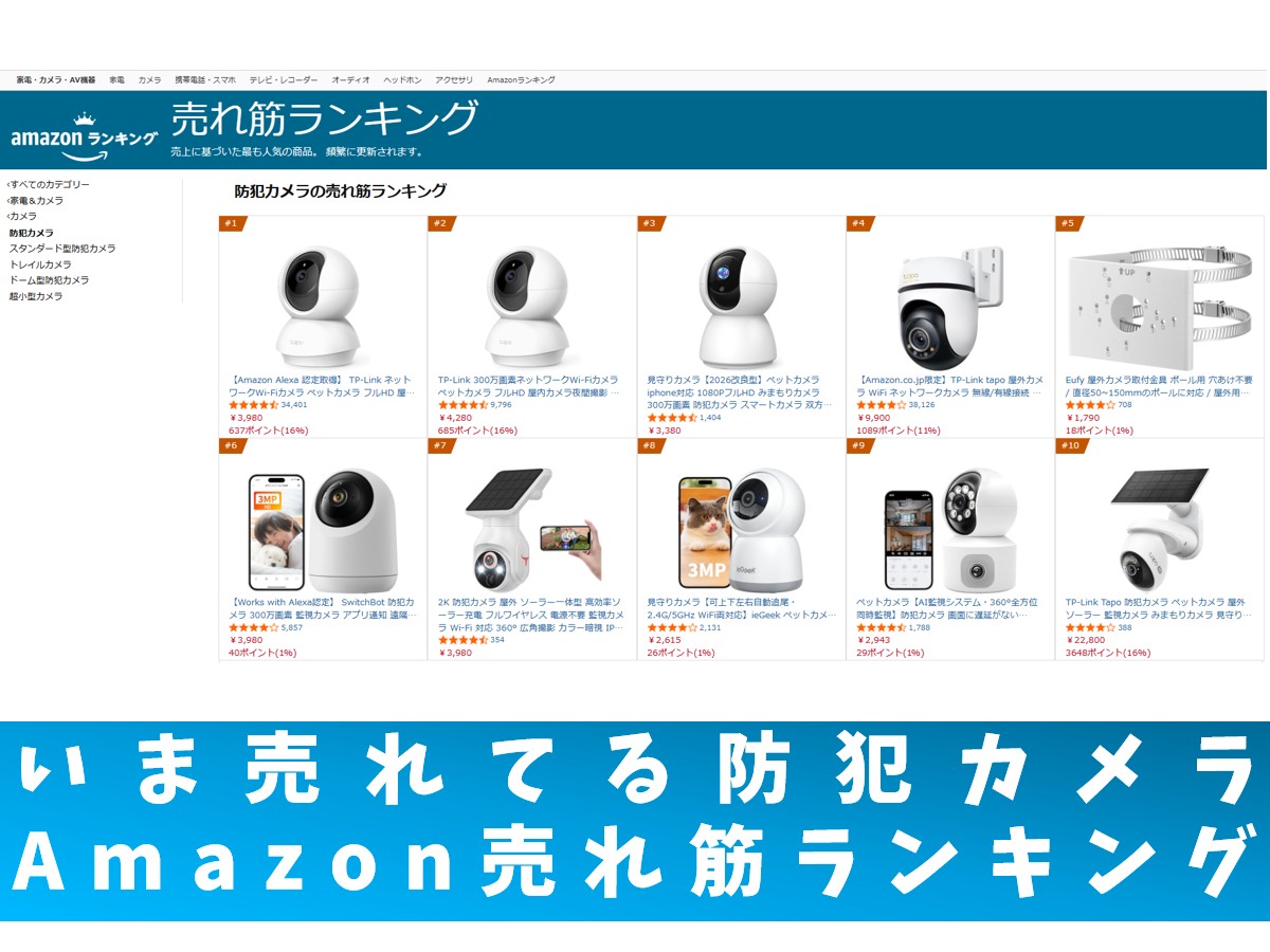 以上、2026年1月12日時点のAmazonの防犯カメラ売れ筋ランキングでした。