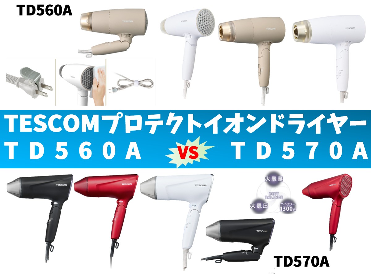 TD560AとTD570Aの違いを6つの要素別に徹底比較&口コミリンク!TESCOMプロテクトイオンヘアドライヤーまとめ